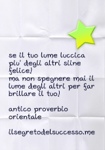 Se il tuo lume brilla più degli altri siine felice, ma non spegnere mai il lume degli altri per far brillare il tuo. Proverbio Orientale